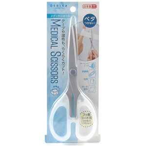 サージカルテープやガーゼのカットに! 医療現場で定番の看護師・介護士向けはさみ。 ●刃部はフッ素コーティング加工で、粘着物が付きにくく剥がしやすい。 ●伸縮性のストラップ付属でポケットから落としにくい...