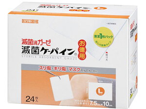 【商品説明】●1枚ずつ包装し、滅菌しています。【仕様】●サイズ(mm):L・100×75●入数:1箱(24枚入)●材質:綿100%●12重折タイプ●EOG滅菌済(個包装)●滅菌処理を施している商品です。●一般医療機器クラス1...