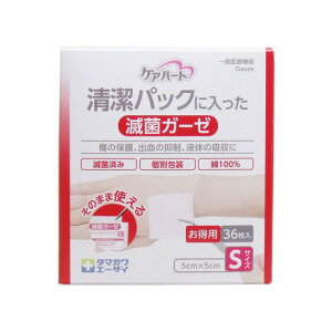 。 商品名 ケアハート 清潔パックに入った滅菌ガーゼ Sサイズ お得用 36枚入 商品説明 傷の保護、出血の抑制、液体の吸収に! 綿100%のガーゼ製品を滅菌したものです。 1 枚ずつ包