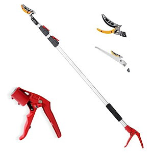 【専用ノコギリ付き】取り付け簡単な専用ノコギリ付き、太い枝も簡単に切れます。 【伸縮式】2段階伸縮式で、最長3mまで伸ばすことができます、フルーツピッキング、家庭、果樹園、公園、庭園、高所の切断作業などに最適です...
