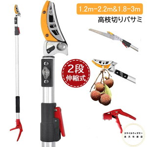 カットした枝や果実を落とさず掴んだまま回収できます。 【商品仕様】1.2m-2.2m:重量1.2kg、1.8m-3m:重量1.4kg、刃長48mm 、2.4m-4m:重量1.6kg、刃長48mm 付属品:ノコギリ、日本語説明書...