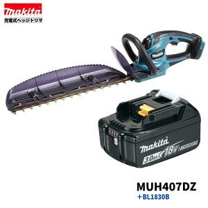 マキタ 18V 充電式ヘッジトリマ 形式: MUH407DZ 刃物長: 400mm ボデーカラー:青。《標準セット内容》(1)本体 ×1台 (2)バッテリー(3.0Ah) BL1830B × 1本。