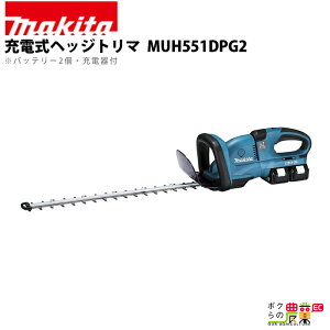 <仕様など> MUH551DPG2 6.0Ah(バッテリBL1860B×2本・2口急速充電器DC18RD付)充電式ヘッジトリマ 刈込幅(mm):550 ストローク数(min-1)[回/分]:1,000〜1,800 本機寸法(長さ×幅×...