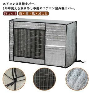 1年中使える取り外し不要のエアコン室外機カバー。吹き出し口部分はメッシュ素材でカバーをつけたままで使用が可能。表面のアルミ素材が直射日光を反射し、温度上昇を抑えて省エネ対策になります。また、室外機を雨や雪...