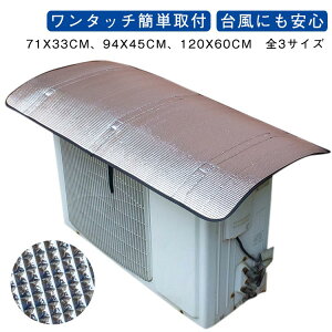 ワンタッチ簡単取付・台風にも安心71x33cm、94x45cm、120x60cm 全3サイズ室外機を直射日光から守り室外機の負担を軽減!余分な電力を削減でき省エネに。3層構造のアルミ蒸着シートと気泡緩衝材で太陽熱を遮断し、直射日光を反...