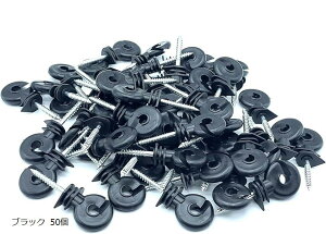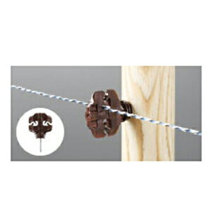 この商品は電柵ロープを電柵支柱に固定する絶縁のリング碍子の50本セットです。碍子(がいし)とも読みます。ナット固定の碍子タイプで鉄製の電柵支柱やボードや板などをそのまま利用することも可能です。事前に下穴をあけて利用する