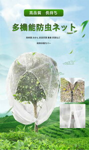 巾着+ジッパー式 園芸・プランター・菜園に最適。風・虫・鳥から植物をしっかり守ります。網目より小さい害虫の侵入は防げません。多機能:防虫ネットは主に作物を昆虫、鳥や動物等の害虫害獣から守れ、これ以外に保温、防風、霜、雪