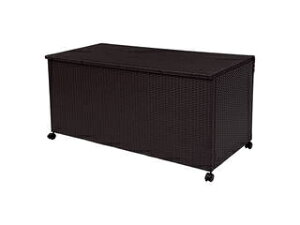 ●樹脂製なのでお手入れ簡単●ベランダやお庭の収納に ■サイズ:(約)幅122×奥行56×高さ60cm■材質:主材/スチール、張地/ポリエチレン※組立式※キャスター付 RUD2430DBR