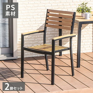 【特長】・人工木の天板を使用した、ウッド調ガーデンチェアです。・2脚セットでのお届けです。・人工木を使用しているので、耐久性が高いです。・使わないときはスタッキング可能・肘掛けつきなので、ゆったり座れます...