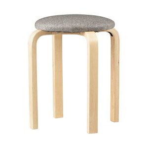 アスト 木製ラウンドスツール クッション付 グレー 1脚。6脚までスタッキングできるグレーのスツール。商品スペック寸法:W405×D405×H473。