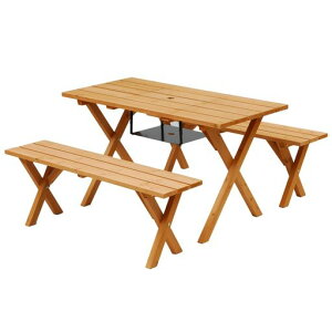 テーブルサイズ:幅120x奥行59x高さ68cm重量13kg ベンチサイズ:幅120x奥行29x高さ42cm重量6kg 原産国:中国 材質:天然木杉材 コンロスペース:幅41奥行37cm