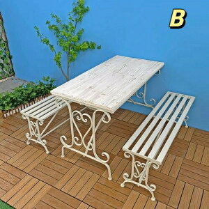? 完全な3点セット:錬鉄製ベンチ2脚、錬鉄製フレームと無垢材の天板を備えたテーブル1脚、中央にクロスバー補強が施された絶妙な彫刻デザイン。屋外での食事やフロントポーチベンチでのくつろぎに最適なパティオベンチ? 錆びにくい金属