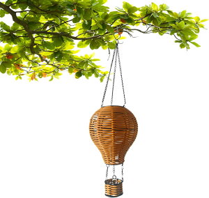 ラタン風の編み込みデザイン:手作りのラタンランタンは、ナチュラルな雰囲気を演出し、3Dホットエアバルーンをイメージしたユニークなデザインが目を引きます。アウトドアスペースやガーデンデコレーションに最適で、手作業による繊