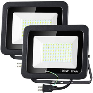 Size:100W2個・LED投光器 100W規格:144個高輝度SMDチップを採用、発光効率は非常に高い、極薄型100W LED投光器1400Wに相当、普通のLED投光器より明るく、安定しています。接続線:2メートル...