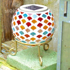 商品説明モザイクガラスから溢れるカラフルな光が幻想的な雰囲気を演出するソーラーライトです。ステンドグラスのようなガラスと丸みのあるフォルムが美しいデザインなので、ライトが付かない昼間でもお庭に彩を与えます。||電源が必