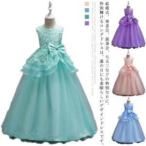 結婚式、発表会、演奏会、七五三などの特別な日に、特別輝けるロングドレスは、誰の目にも素晴らしいデザインドレスです。子供ドレスとは思えない、豪華なレース使いに、きっとため息が漏れることでしょう。お嬢様のサイズで...