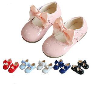 【ドレスアップスタイル 】 可愛いリボンと特別感のある光沢がある子ども靴はフォーマルやワンピース、ドレスなどにぴったり。もちろん、普段着でも可愛く履いていただけます。【 一人でも簡単 】 カカト部分が柔らかい素材で脱ぎ履き