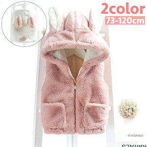 あったかもこもこで防寒対策♪うさぎ耳付きが可愛い子供用ベストです。【サイズについて】画像をご参照ください。【カラーについて】生産ロットにより柄の出方や色の濃淡が異なる場合がございます。お使いのモニターや撮影時の光の加
