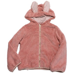“ラ ポシェ ビスキュイ”のうさ耳フードジャケット・ふわもこ素材が暖かいボアパーカー・レース付きのうさ耳を配置したフード・ファスナータイプで脱ぎ着しやすい◎・軽くて暖かいので秋冬に大活躍・両サイドにポケットを配置本体
