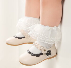 レースとラッフルが上品なキッズソックス。 ☆【素材】Nylon Spandex ☆【原産国】中国 ☆【サイズ】20-22cm(伸縮性のある生地です) ☆上品で綺麗なレースを使用しています。 ☆フォーマ...