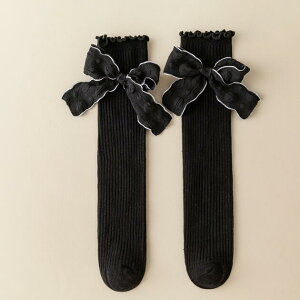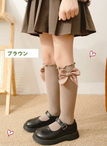 小さなリボンがアクセントの、華やかでかわいらしいニーハイリブ編みストッキング。 シンプルなデザインでカジュアルな服装にも、フォーマルな服装にも似合う、定番デザインです。通気性が高く履き心地の良い素材を使用しお子様のお肌