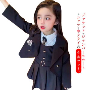 ジャケット+ジャンパースカート+シャツ+ネクタイの4点セット。かわいらしさと上品さを兼ね備えたデザインです。綿混紡素材を使用し、肌触りが柔らかくて、快適な着心地を実現できます。七五三、入学式、入園式、卒園式などのフォーマル