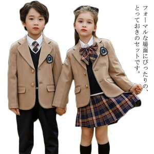 男の子5点セット:ジャケット+ズボン+シャツ+ネクタイ+ベスト女の子5点セット:ジャケット+スカート+シャツ+ネクタイ+ベスト★ちょっとしたパーティーや結婚式、発表会や入学・入園、卒業シーズンにも。フォーマルな場面にぴったりの、と