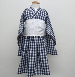 90cm 浴衣風の袖のデザインと、兵児帯付き ワンピースタイプなので、お子様にも 着付けが苦手なママにおすすめの浴衣ですブロックチェック柄にホワイトの帯/涼やかなかわいいデザインです ■