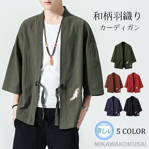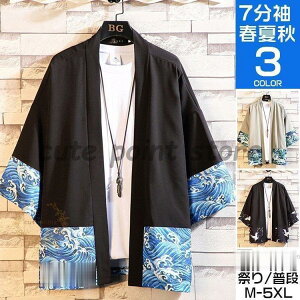 甚平 メンズ 七分丈 七分袖 おしゃれ 羽織 カーディガン 着物 和風 切り替え 部屋着 和式 ルームウェア 浴衣風 カジュアル 大きいサイズ 夏祭り ファッション 父の日 春物 夏服 グリーン ブルー...