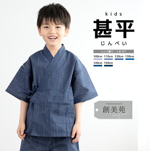 清涼感たっぷりのしじら織の甚平夏祭りにピッタリな創美苑オリジナルのキッズ甚平です。しじら織りの涼しげな生地に、縞が描かれたシンプルなデザインです。生地はしじら織りで、柔らかい肌触りと吸湿性に優れた混紡生地です...