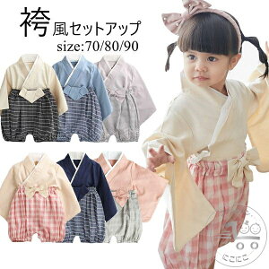 【お祝い事の衣装におしゃれな袴風ロンパース】 普段使いのロンパースと変わらず着せやすく やわらかい素材で着心地もGOOD 股下スナップボタンでおむつ替えも便利です プレ...