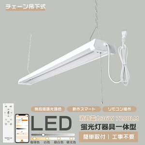商品詳細 ●商品名:スマート制御 LEDベースライト ●消費電力:36W ●全光束:7200LM ●調光機能:無段階調整 ●調色機能:電球色〜昼光色(3000K〜6000K)無段階調整 ●照射角度:210° ●演色性:≧Ra85 ●入...