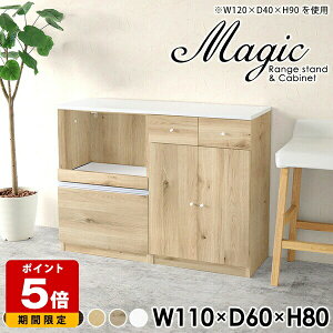magic レンジ台×キャビネット W110×D60×H80 木目サイズサイズ:約幅1100 奥行き600 高さ800 mm材質[天板・スライド棚]メラミン樹脂化粧合板[前板]ブラウン・ダークブラウン・チーク/デルナチュレ化粧合板ホワ...