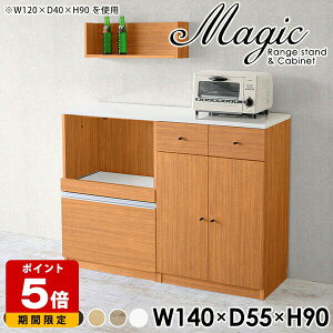 magic レンジ台×キャビネット W140×D55×H90 木目サイズサイズ:約幅1400 奥行き550 高さ900 mm材質[天板・スライド棚]メラミン樹脂化粧合板[前板]ブラウン・ダークブラウン・チーク/デルナチュレ化粧合板ホワ...