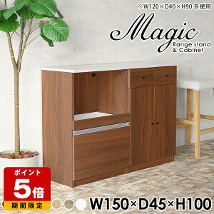 magic レンジ台×キャビネット W150×D45×H100 木目サイズサイズ:約幅1500 奥行き450 高さ1000 mm材質[天板・スライド棚]メラミン樹脂化粧合板[前板]ブラウン・ダークブラウン・チーク/デルナチュレ化粧合板...