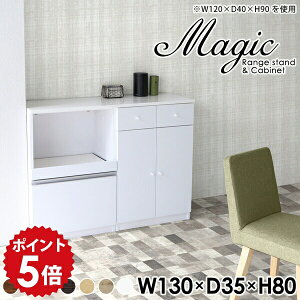 magic レンジ台×キャビネット W130×D35×H80 木目サイズサイズ:約幅1300 奥行き350 高さ800 mm材質[天板・スライド棚]メラミン樹脂化粧合板[前板]ブラウン・ダークブラウン・チーク/デルナチュレ化粧合板ホワ...