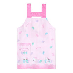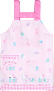 キティちゃんエプロンで楽しくお手伝い!130cmサイズ、総柄デザインがキュート。肩ひもとウエスト調整可能で着脱も簡単♪おうちでも学校でも大活躍!
