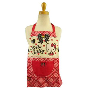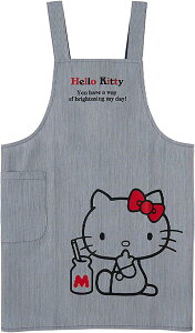 キティちゃんが家事を応援!H型で動きやすい大人用エプロン。ボタンタイプで着脱も簡単、便利なポケット付きで毎日を楽しく♪