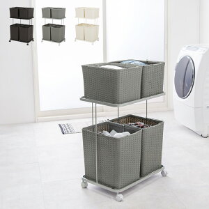【商品について】色柄物や汚れた洗濯物を分けて溜められるランドリーワゴン。バスケットは持ち運べて便利。【商品サイズ(外寸)】(約)幅35×奥行39×高さ110cm【内寸及び補足説明】■組立式■キャスター付【成分材質】主材:スチール張地: