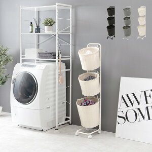 【商品について】持ち運べるバスケットが便利。縦型収納で省スペースに洗濯物を分別できます。【商品サイズ(外寸)】(約)幅33×奥行39×高さ124cm【内寸及び補足説明】■組立式■キャスター付【成分材質...