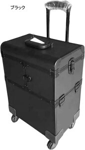 に広がるトレイが付き、ネイルグッズや化粧品が一目瞭然で、メイクがしやすい。幅広い化粧品や美容製品の収納に最適で、美容師やメイクアップアーティストにおすす