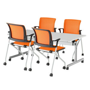 会議や研修に最適な、ミーティングチェア。会議や研修内容のメモをとるのに便利な、メモ台付き。キャスター付きで簡単に移動可能。使用しない時は折りたたんで省スペースで収納できる、水平スタッキング対応。背もたれは通気性の良い、メッシュ仕様。背...