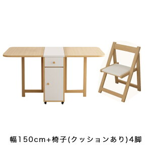 ダイニングテーブルセット 4人掛け 食卓テーブル 両バタテーブル 幅140 キャスター付き コンパクト収納 折りたたみチェア 4脚 バタフライテーブル