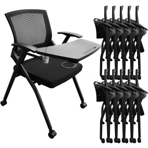 会議や研修に最適な、ミーティングチェア。会議や研修内容のメモをとるのに便利な、メモ台付き。キャスター付きで簡単に移動可能。使用しない時は折りたたんで省スペースで収納できる、水平スタッキング対応。背もたれは通気性の良い、メッシュ仕様。背...