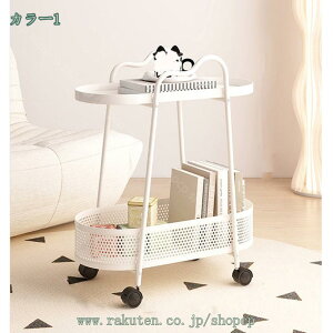 【移動自在キャスター付き】キャスターが付いているので、軽い力で自由に移動可能。使いたい場所へ簡単に運べます 【2 段構造で多収納】2 段の棚で本、雑誌、飲料、小物などを整理整頓。スペースを有効活用できます...
