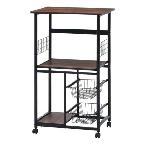 【商品名】 レンジ台 キッチン収納 幅60×奥行46×高さ103.5cm ブラック×ブラウン キャスター付き スチール 組立品 リビング 台所 【ジャンル・特徴】 レンジ台 キッチン収納 レンジラック...