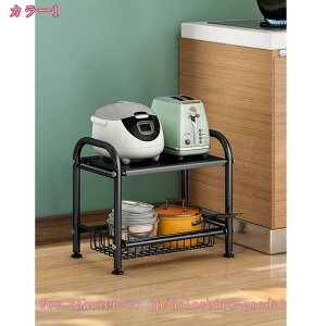 メイン素材:ステンレス☆【サイズ】2段(2層):幅43×奥行27×高さ38cm 【カラー】:ブラック☆電子レンジ、トースター、鍋などキッチンアイテムもまとめて収納。上に色々な調味料、キッチン電器が収納できます。収納力が大幅に向上され