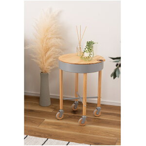 小物が収納できる、北欧カラーのキャスター付きサイドテーブル 北欧ナチュラルなデザインとカラーで、優しい空間を作り出す「sylphシルフ」シリーズに丸い形がかわいらしい、収納付きのサイドテーブルが新登場。 ナチュラルな木目のパイ