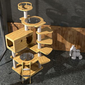 【高品質な実木製作】丈夫で耐久性のある実木素材を選択し、木目が美しく自然で、異味がなく、有害な化学物質を含まないで、猫に健康で環境保護型の居住環境を提供します。また、実木の構造が安定して、荷重能力が強く...