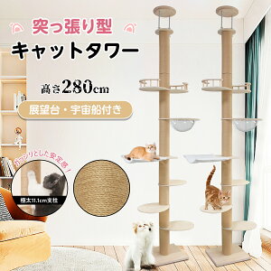 商品仕様支柱: 麻紐 板材:ラバーウッド 高さ:240-280cm商品特性【猫が喜ぶ機能満載】 見晴らしのよい高台、遊び放題の幅広い台座、宇宙船、ハンモックなどを付けます。 猫ちゃんの遊び場としてピッタリの室内用キャットランドです。 【